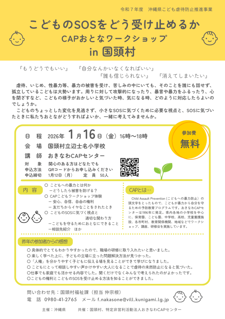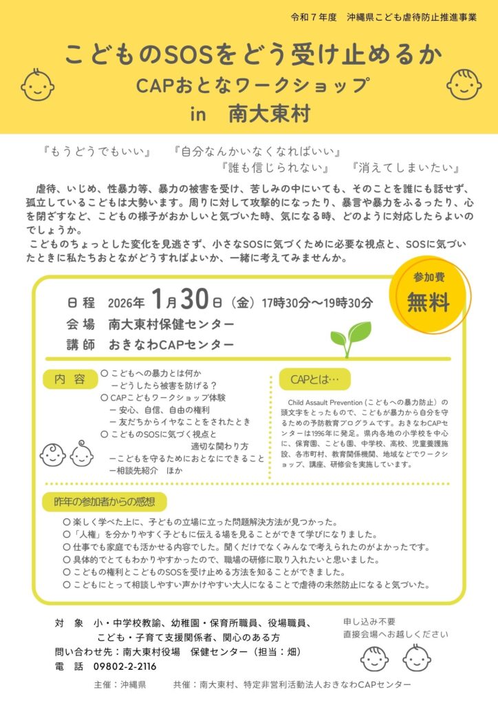 CAPおとなワークショップを南大東村、国頭村で開催します。